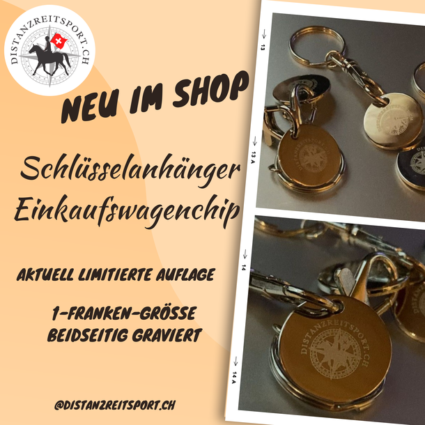 Distanzreitsport.ch Neuer Fan-Artikel: Schlüsselanhänger Einkaufswagenchip Ein neuer Fan-Artikel ist im Online Shop erhältlich! Der Einkaufswagenchip am praktischen Schlüsselanhänger hat die Grösse einer 1-Franken-Münze und ist beidseitig graviert. Erhältlich im Online Shop. tagPlaceholderTags: